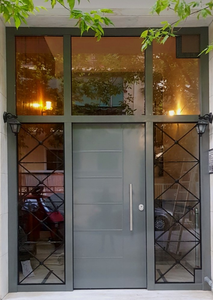 Πόρτα Αλουμινίου - Εισόδου Πολυκατοικίας Με 2 Σταθερά & Φεγγίτη