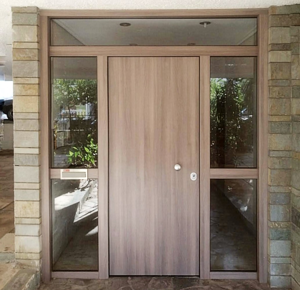 Πόρτα Laminate - Εισόδου Πολυκατοικίας Με 2 Σταθερά & Φεγγίτη