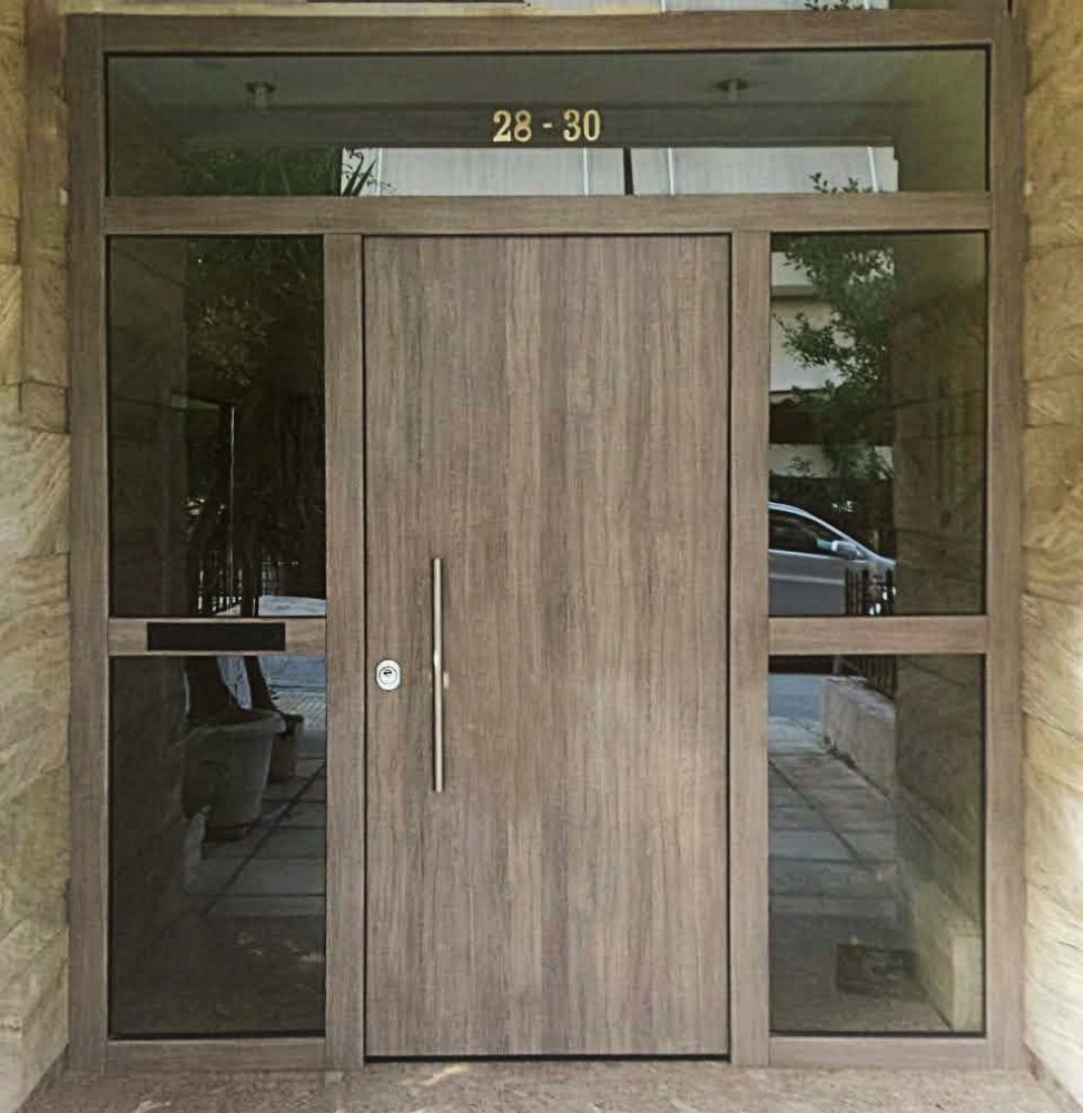 Πόρτα Laminate - Εισόδου Πολυκατοικίας Με 2 Σταθερά & Φεγγίτη