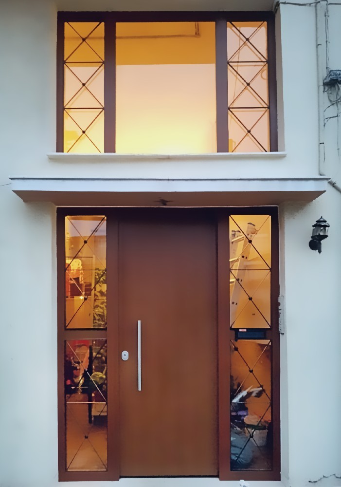 Πόρτα Αλουμινίου - Εισόδου Πολυκατοικίας Με 2 Σταθερά & Φεγγίτη