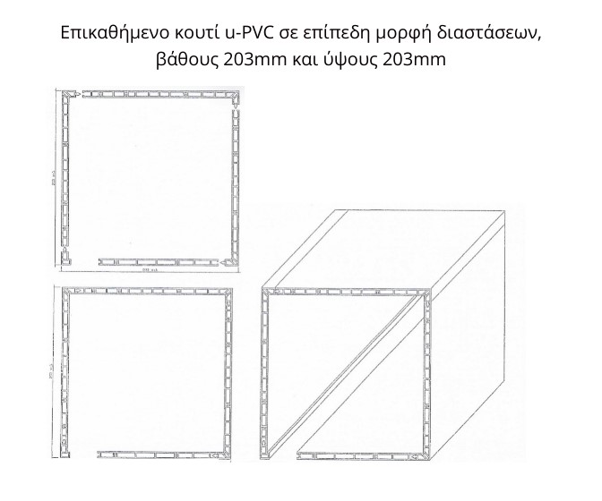 · Επικαθήμενο κουτί u-PVC σε επίπεδη μορφή διαστάσεων, βάθους 203mm και ύψους 203mm