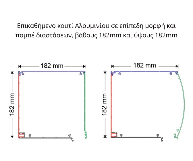 · Τα κουτιά, οι οδηγοί και το τερματικό βάφονται σε όλα τα διαθέσιμα χρώματα του αλουμινίου, ral, μεταλλικά και αποχρώσεων ξύλου