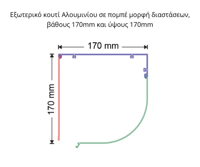 · Εξωτερικό κουτί Αλουμινίου σε πομπέ μορφή , βάθους 170mm και ύψους 170mm .
