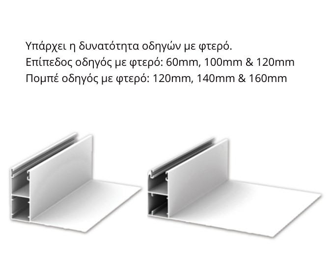 - Επίπεδος οδηγός με φτερό: 60mm, 100mm & 120mm