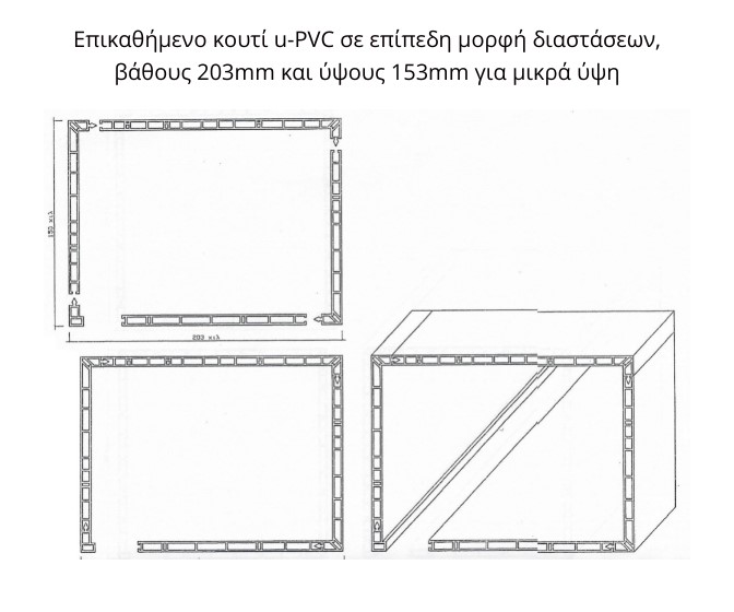 · Επικαθήμενο κουτί u-PVC σε επίπεδη μορφή διαστάσεων, βάθους 203mm και ύψους 153mm για μικρά ύψη.