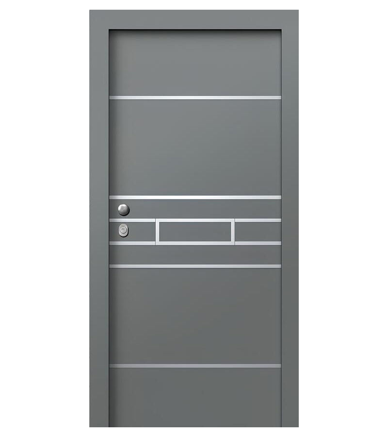 Πόρτα Ασφαλείας Αλουμινίου, με  Inox σχέδιο και τοποθέτηση