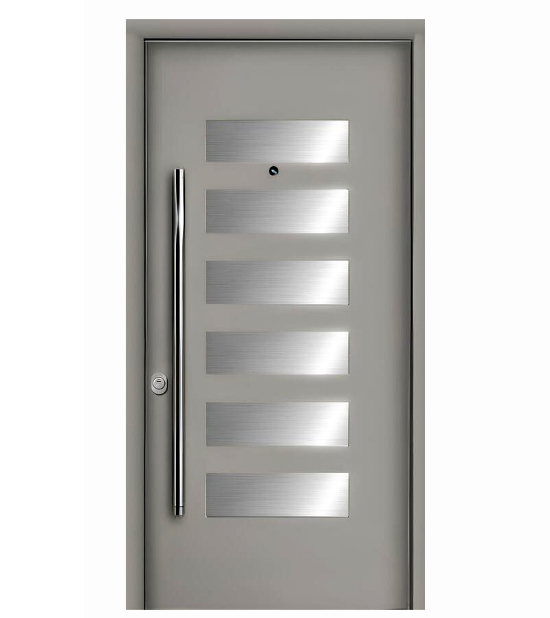Πόρτα Ασφαλείας Αλουμινίου, με  Inox σχέδιο και τοποθέτηση